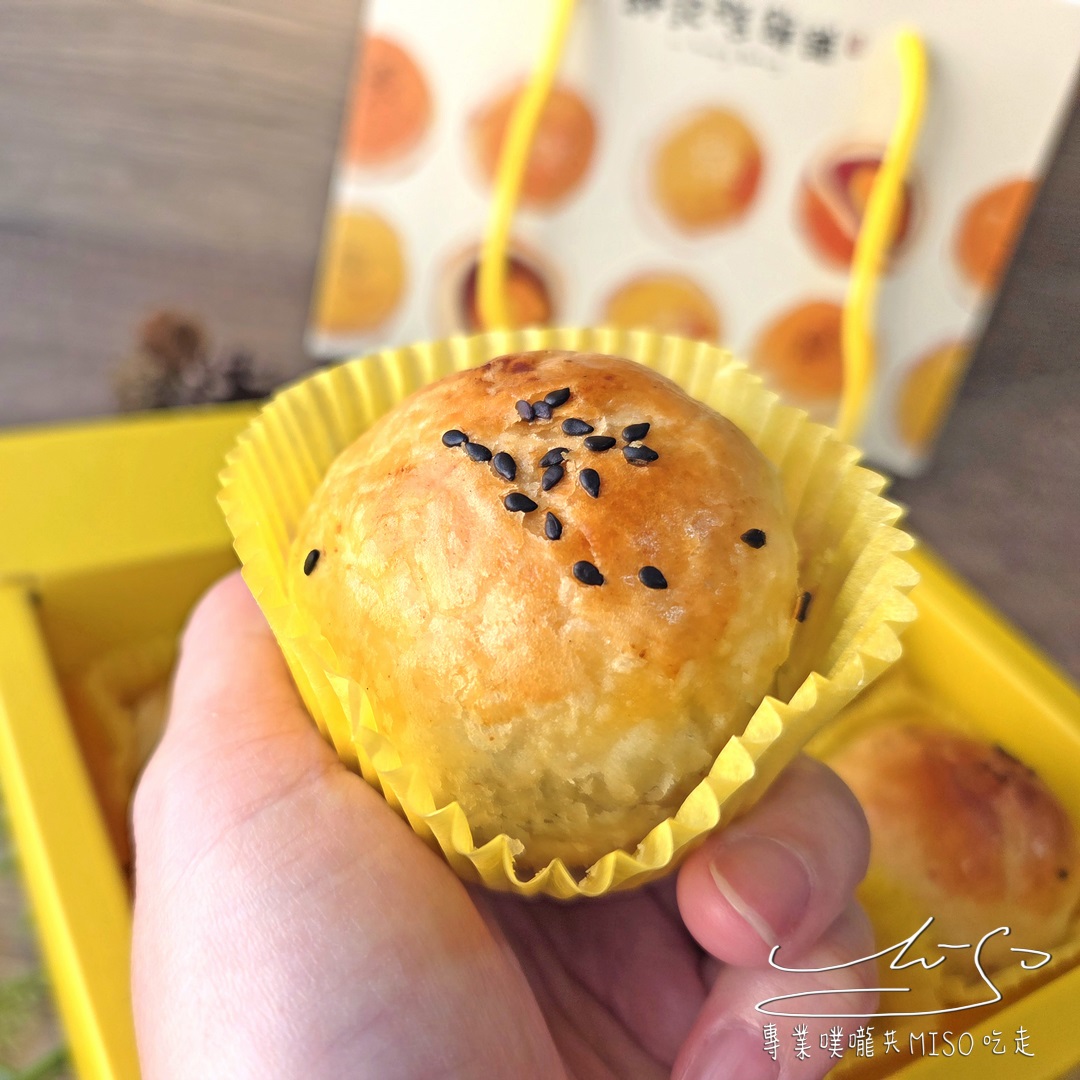 蛋黃酥外型飽滿圓潤,金黃酥皮層層分明,表面微微的焦香色,就像剛出爐的小太陽一樣