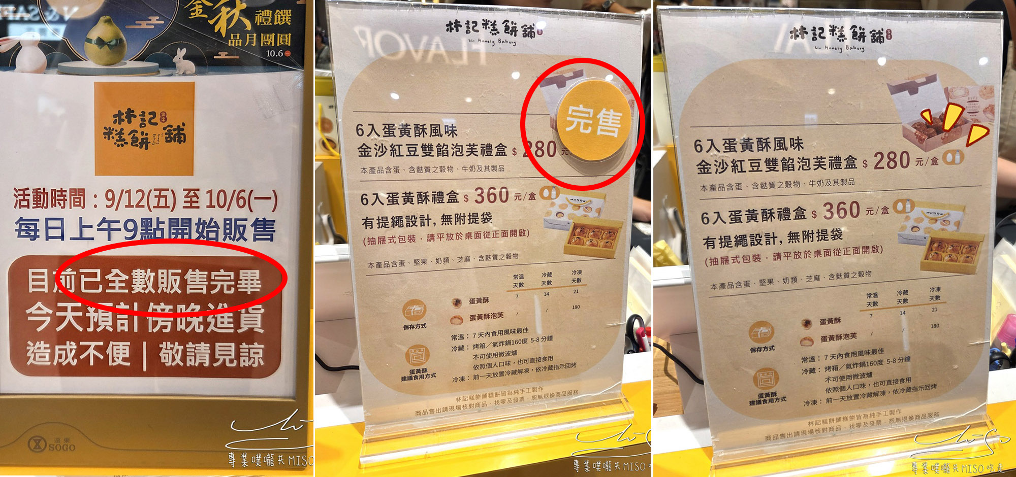 蛋黃酥6入 $330、SOGO購入 $360