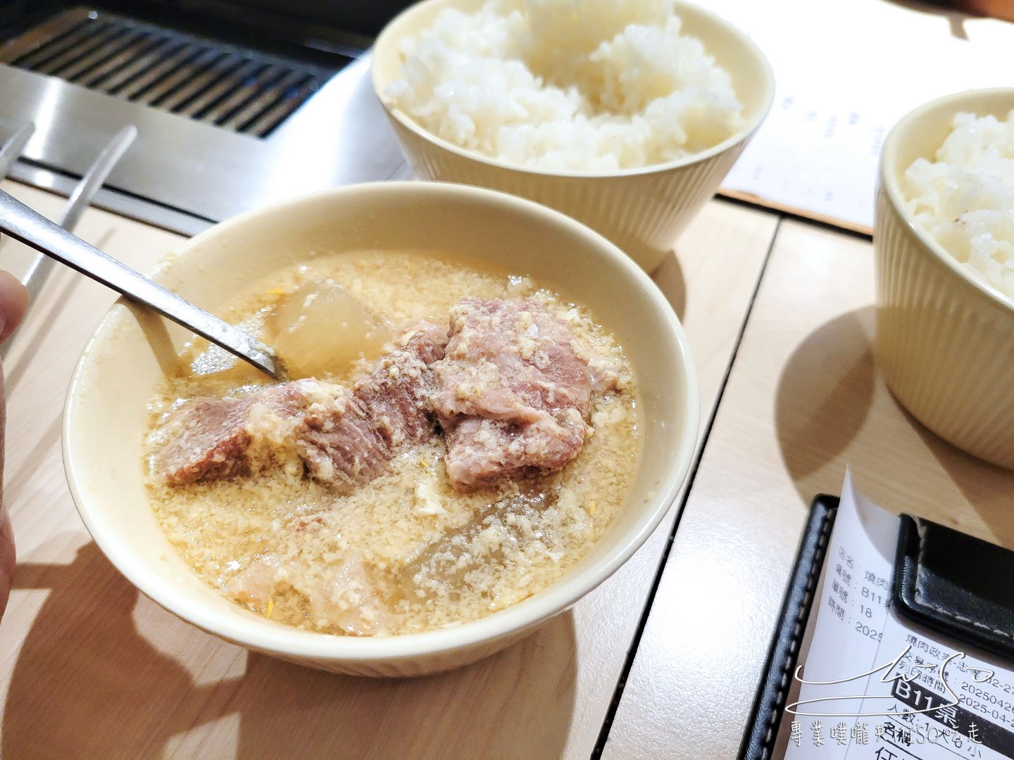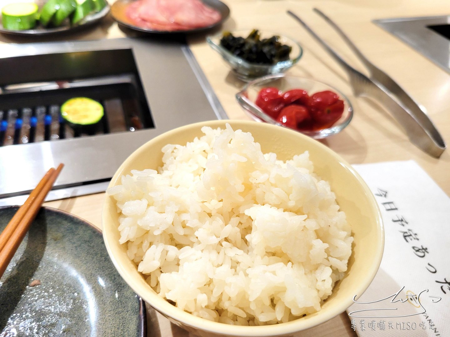 前面有提到他們家都是單點,所以白飯也是要自行單點的唷!熱呼呼的白飯粒粒分明,搭配剛烤好的燒肉一口吃「完美」!