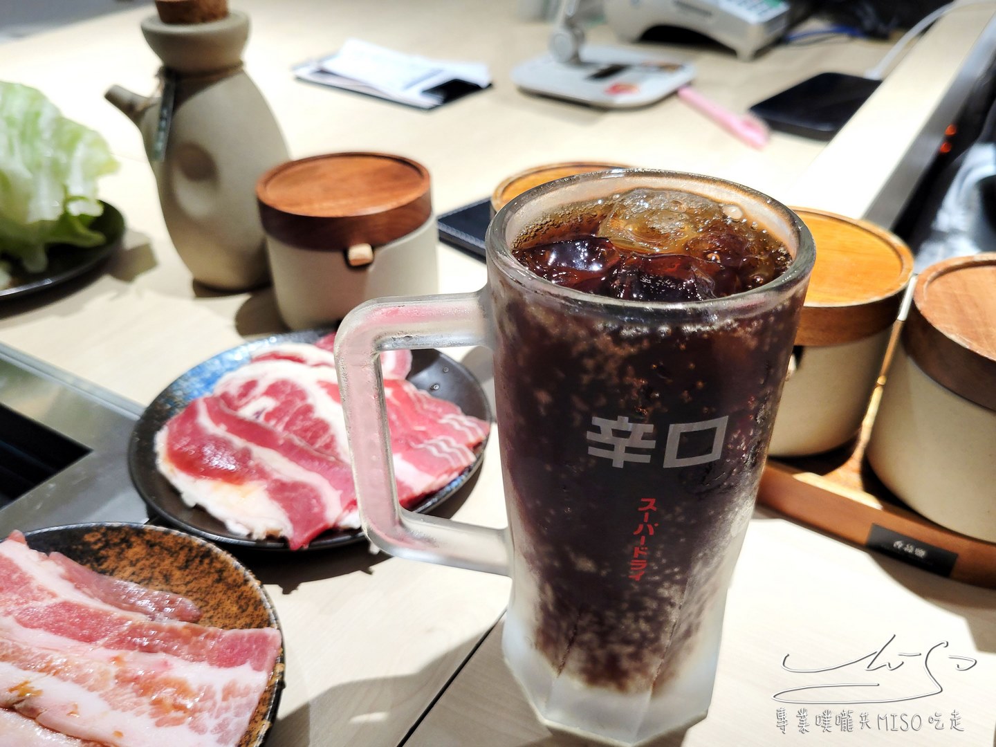 啤酒杯裝的可樂感覺就是比較清涼好喝,刺激的爽感,吃燒肉配很過癮,另外他們家還有多款沾醬、配料,像是昆布鹽、日式蔥鹽、香蒜鹽等等,吃燒肉絕配!
